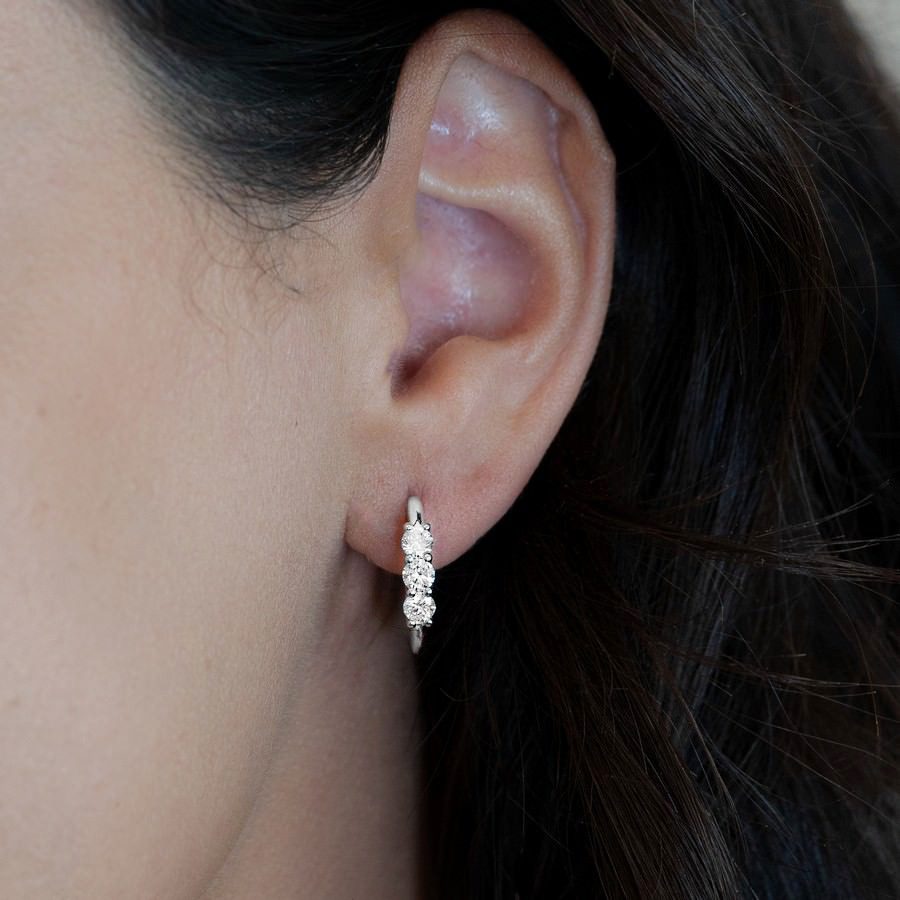 The 3 Diamond Huggies are a perfect blend of modern design, elegance, and everyday wearability. Featuring three sparkling diamonds set in a secure huggie style, these earrings sit close to the earlobe, creating a sleek, polished look with continuous brilliance. Their versatile design allows them to be worn alone for a refined statement or stacked with other earrings for a fashionable, layered effect.