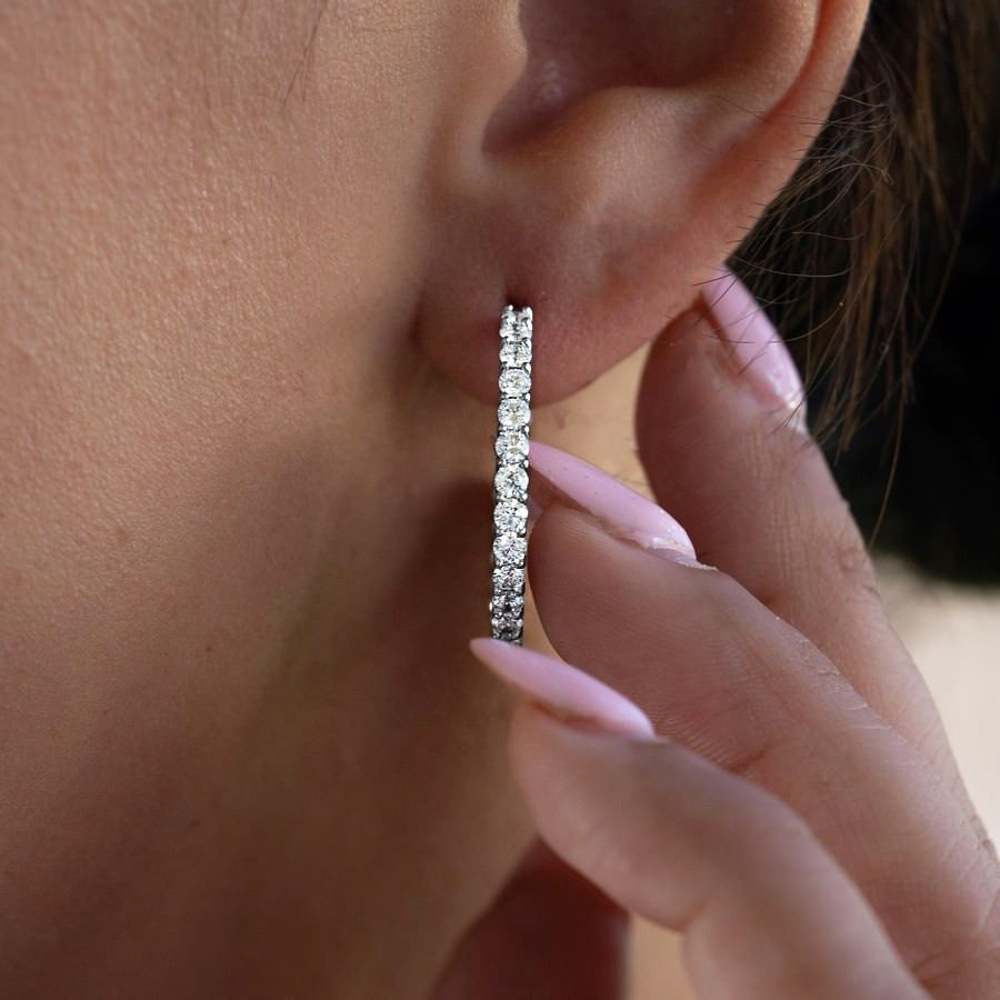 - Medium 23.5mm round diamond huggies for bold elegance
